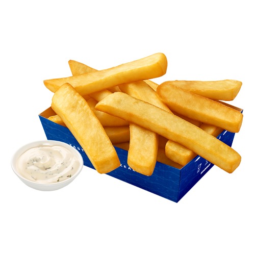 Not your average fries! Crispy on the outside, soft and fluffy on the inside, our golden thick cut chips are the perfect comfort side